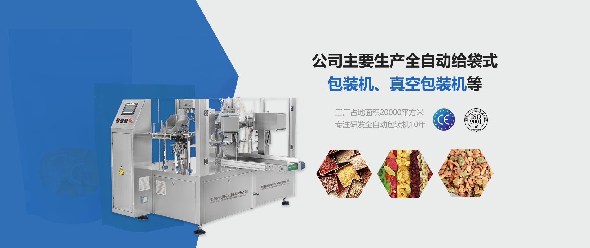 洛陽(yáng)市捷珂機(jī)械有限公司位于洛陽(yáng)市宜陽(yáng)縣牌窯軸承工業(yè)園內(nèi),系現(xiàn)代化高科技企業(yè)。 專(zhuān)業(yè)從事全自動(dòng)給袋式包裝機(jī)以及給袋真空機(jī)的研發(fā)和生產(chǎn),是一家集研發(fā)、技術(shù)咨詢(xún)、 技術(shù)服務(wù)、生產(chǎn)制造、銷(xiāo)售和售后服務(wù)為一體的包裝機(jī)制造專(zhuān)業(yè)企業(yè)。